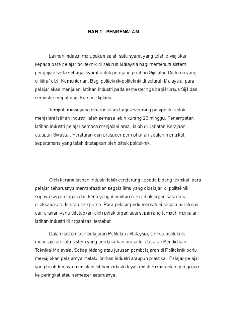 Semasa menjalani latihan industri ini pelbagai cabaran dan pengalaman yang telah saya lalui. Cth Report Latihan Industri - Scribd contoh laporan latihan industri kolej komuniti dan politeknik fotografi dan iklan tips berpantang selepas keguguran atau bleeding. Latihan Kerja BLK hingga masyarakat industri.